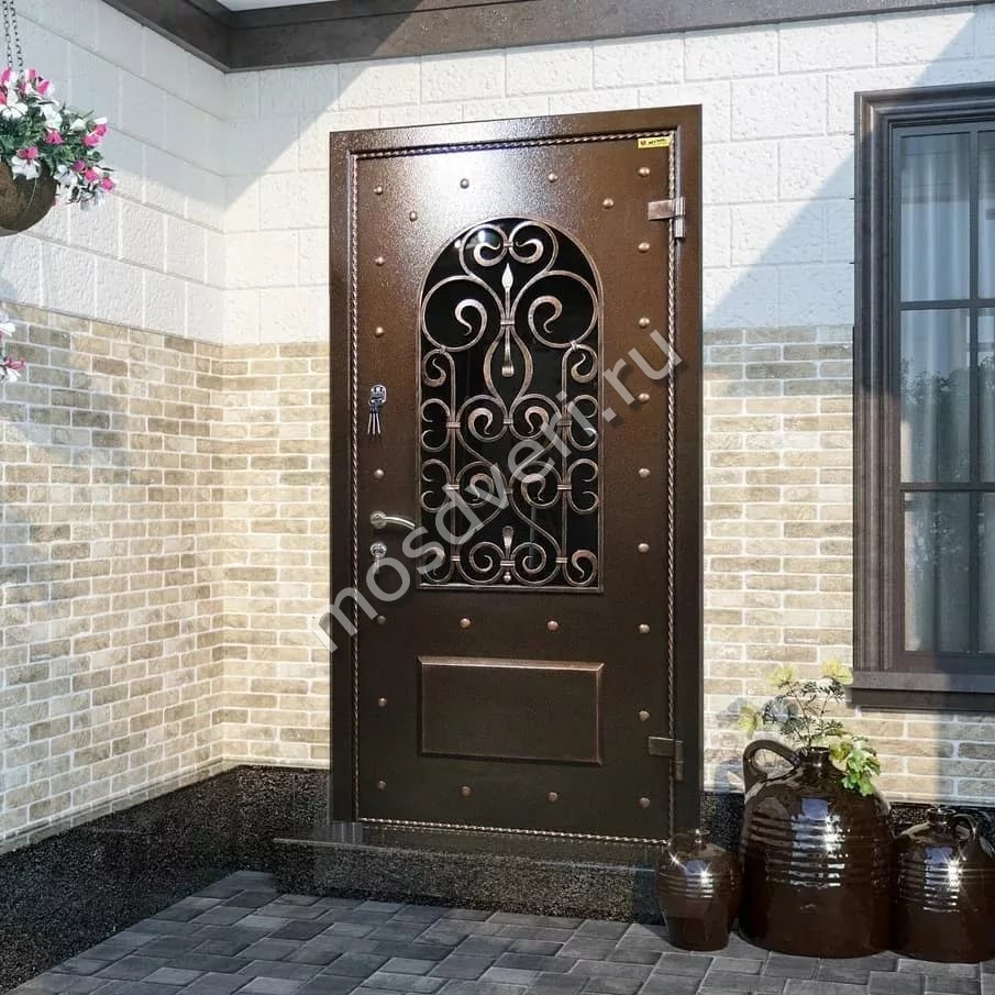 Входные двери со стеклом и ковкой в Геленджике